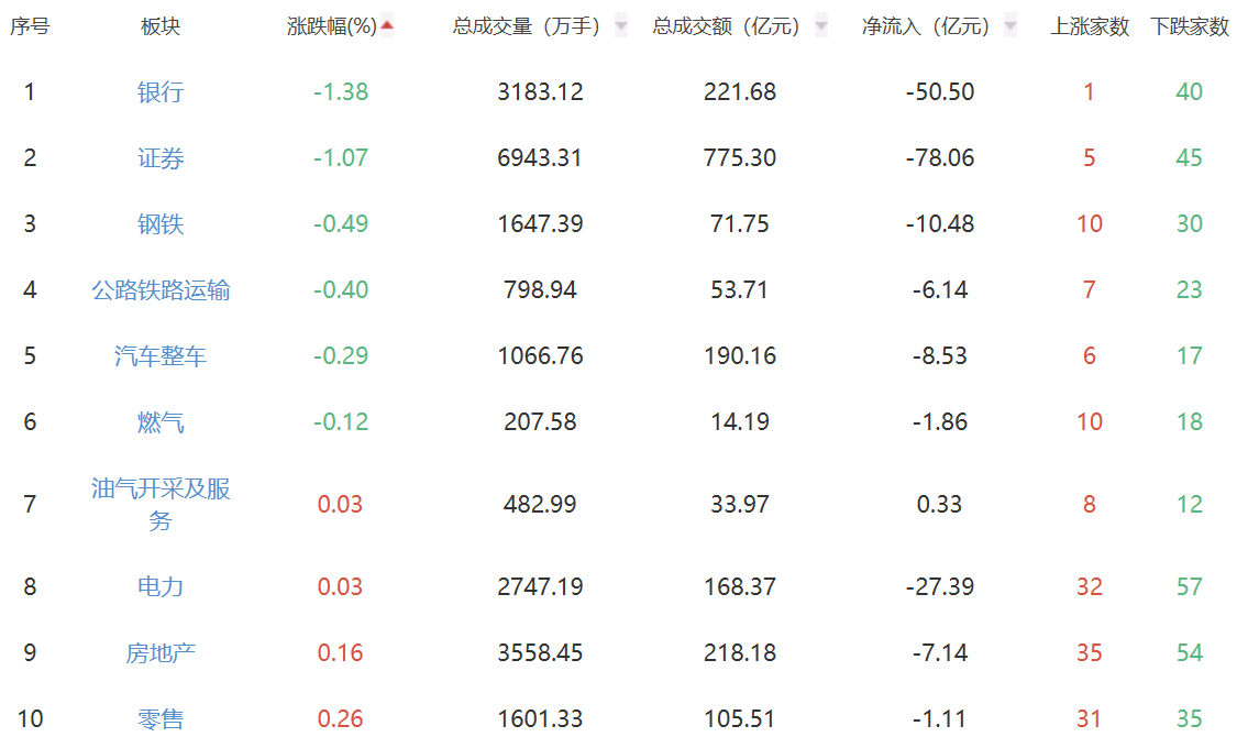 A股市场板块涨跌幅排行