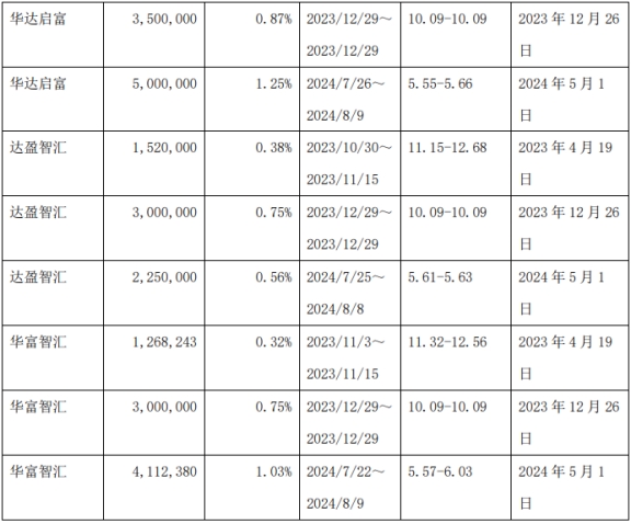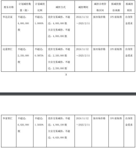 因自身资金需求,公司股东华富智汇拟在减持计划披露的减持期间内,通过集中竞价交易或大宗交易的方式减持合计不超过6,020,000股的公司股份,减持股份占公司总股本的比例不超过1.5050%。其中,通过集中竞价交易方式减持不超过4,000,100股,通过大宗交易方式减持不超过6,020,000股。