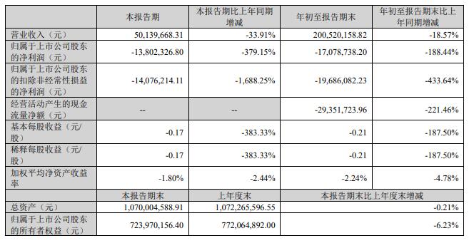 中国经济网北京10月25日讯 多瑞医药(301075.SZ)昨晚发布的2024年第三季度报告显示,公司前三季度实现营业收入2.01亿元,同比下降18.57%;归属于上市公司股东的净利润-1707.87万元,同比下降188.44%;归属于上市公司股东的扣除非经常性损益的净利润-1968.61万元,同比下降433.64%;经营活动产生的现金流量净额-2935.17万元,同比下降221.46%。