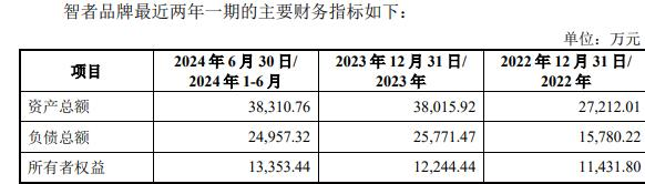 预案显示,标的智者品牌2022年负债总额为1.58亿元,2023年负债总额为2.58亿元,2024年上半年负债总额为2.50亿元,经计算,智者品牌2022年资产负债率为57.99%,2023年资产负债率为67.79%,2024年上半年资产负债率为65.14%,呈走高趋势。