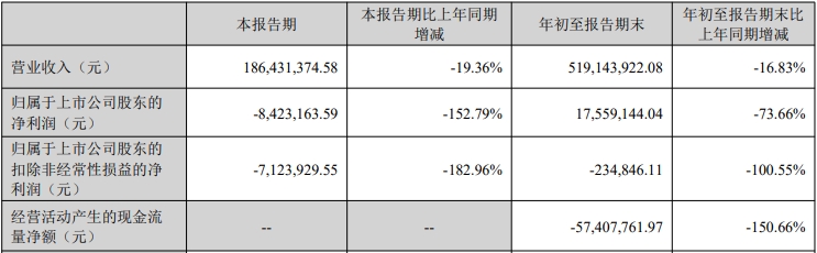 2024年第三季度,狄耐克实现营业收入1.86亿元,同比下降19.36%;实现归属于上市公司股东的净利润-842.32万元,同比下降152.79%%;实现归属于上市公司股东的扣除非经常性损益的净利润-712.39万元,同比下降182.96%。