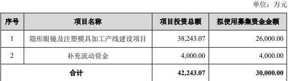 本次以简易程序向特定对象发行股票的募集资金总额不超过30,000.00万元(含本数),扣除发行费用后的募集资金净额将用于投入隐形眼镜及注塑模具加工产线建设项目、补充流动资金。