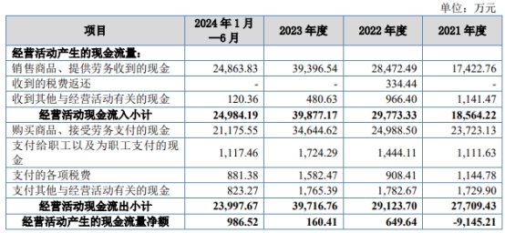 2021年至2023年,科拜尔营业收入分别为2.62亿元、3.07亿元、3.89亿元,销售商品、提供劳务收到的现金分别为1.74亿元、2.85亿元、3.94亿元。