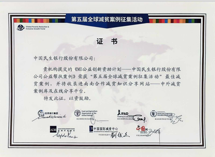 民生银行“ME创新计划”入选全球减贫最佳案例