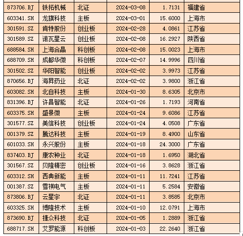从单只个股募资金额来看,排名前五位的企业分别是永兴股份、艾罗能源、达梦数据、诺瓦星云、龙旗科技,募资金额分别为24.30亿元、22.26亿元、16.52亿元、16.29亿元、15.60亿元,分别归属于广东省、浙江省、湖北省、陕西省和上海市。
