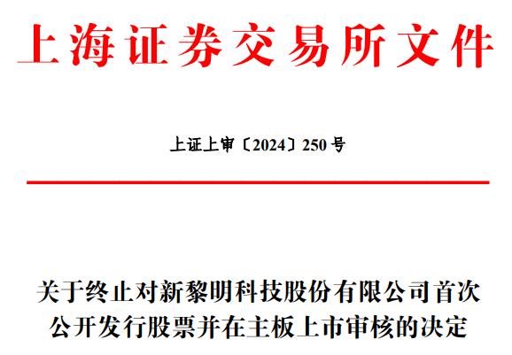 中国经济网北京11月2日讯 据上交所网站显示,上交所决定终止新黎明科技股份有限公司(以下简称“新黎明”)首次公开发行股票并在主板上市审核。