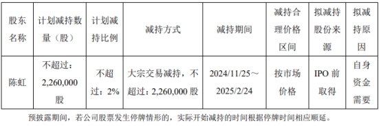 中国经济网北京11月4日讯 德林海(688069.SH)上周五晚间披露的关于股东大宗交易减持股份计划公告显示,因自身资金需求,公司股东陈虹拟自减持股份计划公告披露之日起15个交易日后的3个月内通过大宗交易方式减持其持有的公司股份不超过2,260,000股,减持比例不超过公司总股本的2%,减持价格将根据减持时的市场价格确定;若在减持计划实施期间公司发生送股、资本公积转增股本、配股等股份变更事项的,将根据相关规定对拟减持数量和比例进行调整。