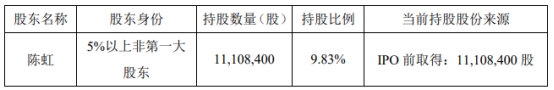 截至公告披露日,股东陈虹直接持有德林海首次公开发行前股份11,108,400股,占公司总股本的9.83%,以上股份来源于公司首次公开发行前及公司上市后资本公积转增股本取得的股份,已于2021年7月22日起上市流通。