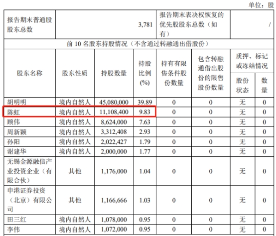 德林海2024年第三季度报告显示,陈虹系公司第2大股东。