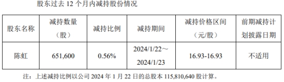 陈虹过去12个月内存在减持德林海股份情况。2024/1/22至2024/1/23,陈虹减持德林海651,600股,减持比例为0.56%,减持价格为16.93元/股。
