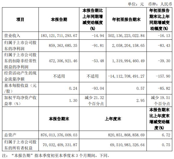 建发股份2024年第三季度报告显示,2024年第三季度,建发股份实现营业收入1831.22亿元,同比下滑14.94%;归属于上市公司股东的净利润8.59亿元,同比下滑91.81%;归属于上市公司股东的扣除非经常性损益的净利润4.72亿元,同比下滑53.48%。