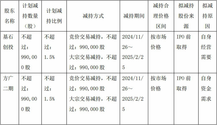 截至公告披露日,基石创投持有光格科技股份4,470,968股,占光格科技股份总数的6.77%;方广二期持有光格科技股份4,790,323股,占光格科技股份总数的7.26%,上述股份均系光格科技首次公开发行前取得的股份,已于2024年7月24日起上市流通。