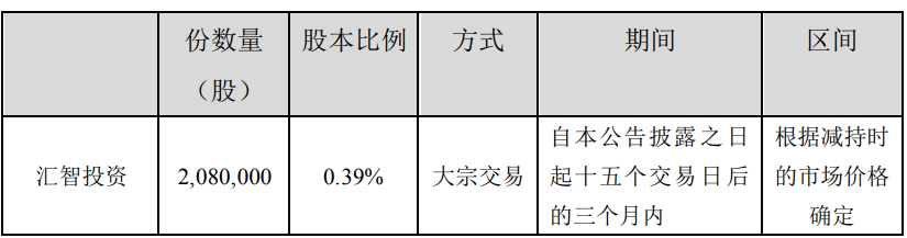 中国经济网北京11月12日讯 卓胜微(300782.SZ)公告,公司于近日收到持股5%以上股东无锡汇智联合投资企业(有限合伙)(简称“汇智投资”)出具的《股份减持计划告知函》,汇智投资计划在公告披露之日起十五个交易日后的三个月内以大宗交易方式减持公司股份不超过2,080,000股,占公司总股本比例0.39%。