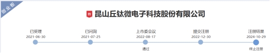 根据《中国证券监督管理委员会行政许可实施程序规定》第四十条及《首次公开发行股票注册管理办法》第三十一条的规定,证监会决定终止丘钛微公开发行股票并在创业板上市注册程序。