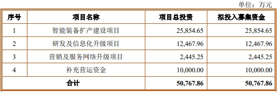 鑫信腾原拟在深交所创业板发行数量不超过2,854.00万股(不含采用超额配售选择权发行的股票数量),且不低于本次发行完成后股份总数的25%。鑫信腾原拟募集资金50,767.86万元,分别用于智能装备扩产建设项目、研发及信息化升级项目、营销及服务网络升级项目和补充营运资金。