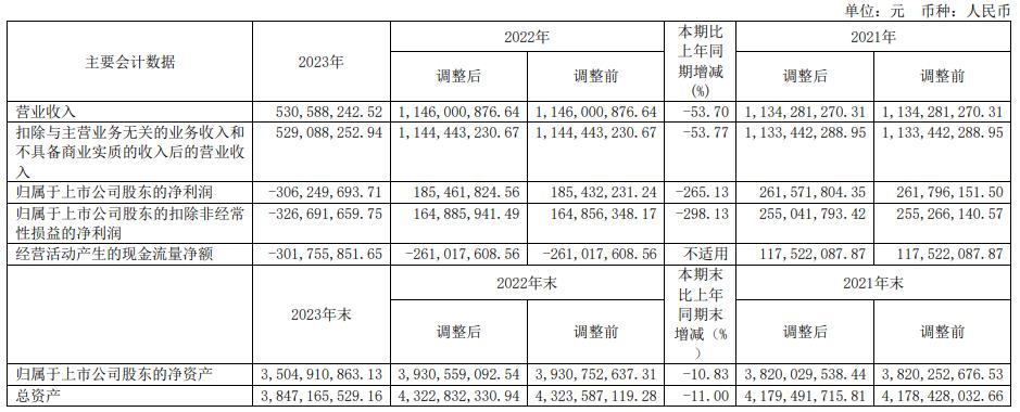 2023年,东芯股份实现营业收入5.31亿元,同比下滑53.70%;归属于上市公司股东的净利润-3.06亿元,同比下滑265.13%;归属于上市公司股东的扣除非经常性损益的净利润-3.27亿元,同比下滑298.13%;经营活动产生的现金流量净额-3.02亿元,上年同期为-2.61亿元。