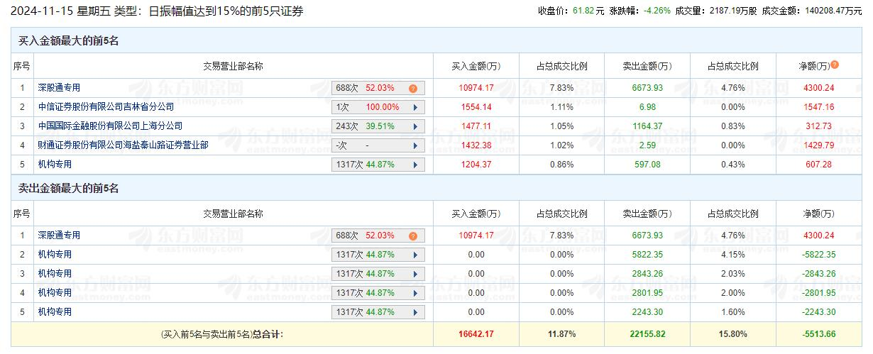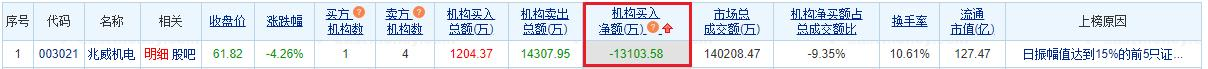 兆威机电龙虎榜:机构净卖出1.31亿元