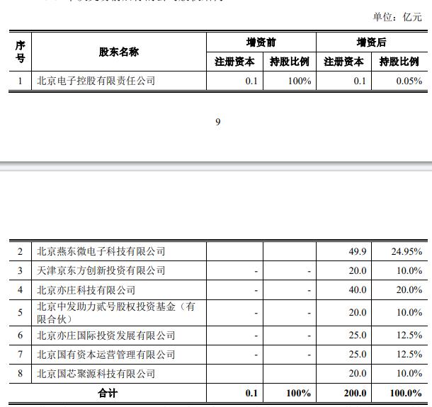 本次交易对手方包括北京电子控股有限责任公司(以下简称“北京电控”)、天津京东方创新投资有限公司(以下简称“天津京东方”)、北京亦庄科技有限公司(以下简称“亦庄科技”)、北京中发助力贰号股权投资基金(有限合伙)(以下简称“中发基金”)、北京亦庄国际投资发展有限公司(以下简称“亦庄国投”)、北京国有资本运营管理有限公司(以下简称“北京国管”)、北京国芯聚源科技有限公司(以下简称“国芯聚源”),上述对手方均为公司关联方,本次交易构成关联交易,但不构成《上市公司重大资产重组管理办法》规定的重大资产重组。