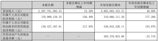 2024年前三季度,富临精工实现营业收入58.83亿元,同比增长40.80%;归属于上市公司股东的净利润3.11亿元,同比增长177.26%;归属于上市公司股东的扣除非经常性损益的净利润2.49亿元,同比增长153.87%;经营活动产生的现金流量净额3.85亿元,同比下降23.71%。