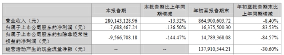 2024年前三季度,公司营业收入8.65亿元,同比下降8.40%;归属于上市公司股东的净利润1637.55万元,同比下降83.53%;归属于上市公司股东的扣除非经常性损益的净利润1478.94万元,同比下降84.57%;经营活动产生的现金流量净额1.38亿元,同比下降30.60%。