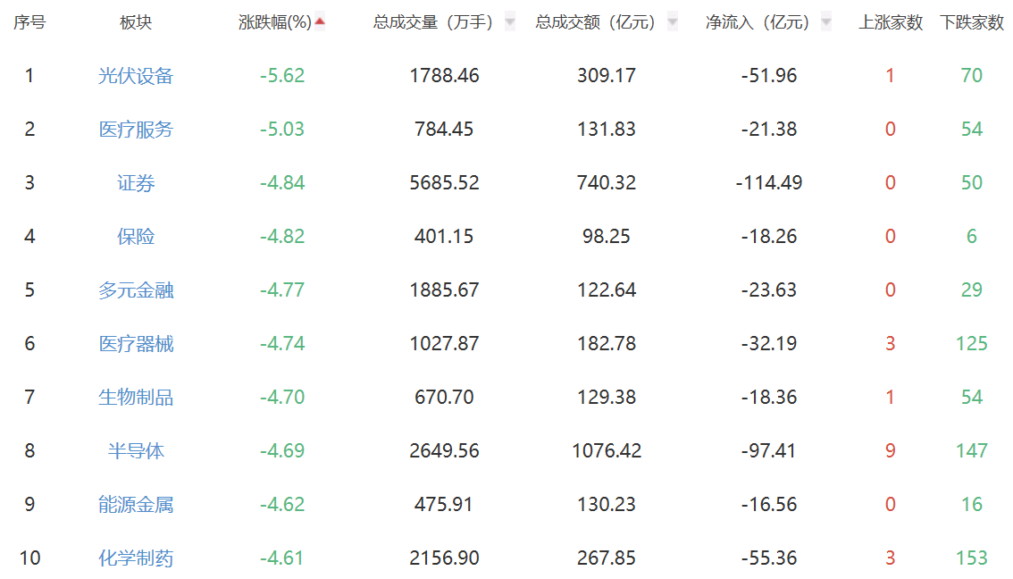 盘面上,互联网电商板块上涨,光伏设备、医疗服务、证券等板块跌幅居前。