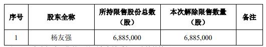 截至公告披露日,公司股份总额为243,570,700股,尚未解除限售的股份数量为119,170,000股,占公司总股本的比例为48.9262%。本次上市流通的限售股属于首次公开发行前已发行的部分股份,股份数量为6,885,000股,占发行后总股本的2.8267%。