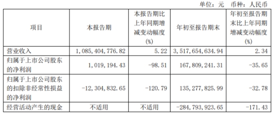 2024年前三季度,湘电股份实现营业收入35.18亿元,同比增长2.34%;归属于上市公司股东的净利润1.68亿元,同比下降35.65%;归属于上市公司股东的扣除非经常性损益的净利润1.35亿元,同比下降32.78%;经营活动产生的现金流量净额-2.85亿元。