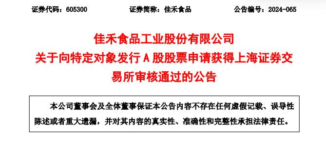 中国经济网北京11月27日讯 佳禾食品(605300.SH)昨晚披露《关于向特定对象发行A股股票申请获得上海证券交易所审核通过的公告》称,公司于近日收到上交所上市审核中心向公司出具的通知,认为公司向特定对象发行股票申请符合发行条件、上市条件和信息披露要求。
