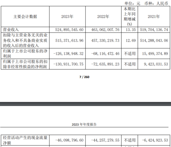 2022年、2023年,昀冢科技营业收入分别为4.63亿元、5.25亿元;归属于上市公司股东的净利润分别为-0.68亿元、-1.26亿元;归属于上市公司股东的扣除非经常性损益的净利润分别为-0.73亿元、-1.31亿元;经营活动产生的现金流量净额分别为-0.44亿元、-0.46亿元。