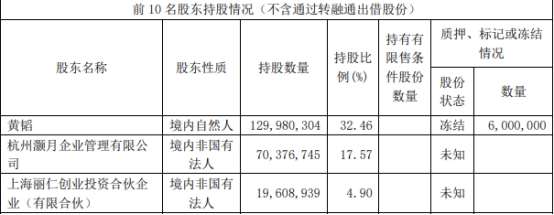 截至公告披露之日,杭州灏月持有公司无限售条件流通股70,376,745 股,占公司总股本的 17.57%。