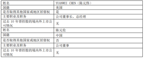 YUANWEI CHEN(陈元伟),男,1963年9月出生,美国国籍,博士学历、博士后研究员、教授,1986年至1989年担任中国科学院成都有机化学研究所助理研究员,1989年至1993年于瑞士洛桑大学攻读化学博士学位,1993年至1995年于美国斯克利普斯研究所(The Scripps Research Institute)进行博士后研究,1995年至1998年担任美国艾伯维制药公司资深研究员,1998年至2005年担任美国拜耳制药公司高级研究科学家,2005年至2008年担任白鹭医药技术(上海)有限公司首席科学官,2008年至2013年担任上海睿智化学研究有限公司药物化学研发副总裁、成都睿智化学研究有限公司总经理,2019年至2021年兼职担任四川大学教授,2013年6月至今任海创药业董事长、总经理。