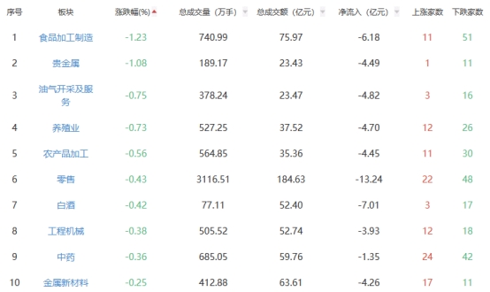 A股市场板块涨跌幅排行