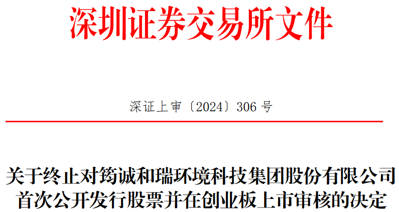 中国经济网北京12月6日讯 深交所网站昨日披露关于终止对筠诚和瑞环境科技集团股份有限公司(简称“筠诚和瑞”)首次公开发行股票并在创业板上市审核的决定。