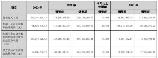 2023年,杰美特实现营业收入6.76亿元,同比下降5.93%;归属于上市公司股东的净利润-9162.29万元,上年同期-1.16亿元;归属于上市公司股东的扣除非经常性损益的净利润-1.33亿元,上年同期-1.57亿元;经营活动产生的现金流量净额-6208.67万元,上年同期-1.04亿元。2021年,公司归属于上市公司股东的扣除非经常性损益的净利润为-570.20万元。