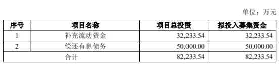 本次发行募集资金总额为82,233.54万元,扣除发行费用后的募集资金净额将偿还债务和补充公司流动资金。