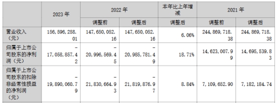 2022年至2023年,威尔泰营业收入分别为14,765.01万元、15,659.63万元,归属母公司股东的净利润分别为-2,098.58万元、-1,705.89万元,扣除非经常性损益后的归属母公司股东净利润分别为-2,181.99万元、-1,989.01万元。