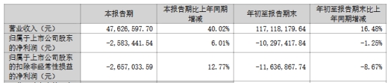 2024年前三季度,公司营业收入11,711.82万元,归属母公司股东的净利润-1,029.74万元,扣除非经常性损益后的归属母公司股东净利润-1,163.69万元。