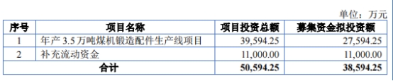 豪钢重工原拟募集资金38,594.25万元,用于年产3.5万吨煤机锻造配件生产线项目、补充流动资金。