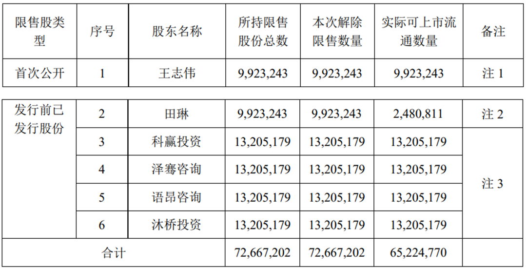 本次申请解除股份限售的股东共计6户,分别为王志伟、田琳、共青城科赢投资合伙企业(有限合伙)、郑州泽骞企业管理咨询中心(有限合伙)、郑州语昂企业管理咨询中心(有限合伙)、共青城沐桥投资合伙企业(有限合伙)。