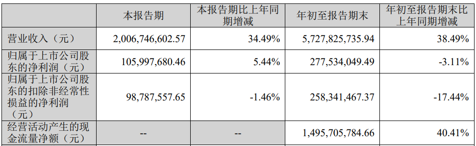 2024年前三季度,致欧科技实现营业收入57.28亿元,同比增长38.49%;归属于上市公司股东的净利润2.78亿元,同比下降3.11%;归属于上市公司股东的扣非净利润2.58亿元,同比下降17.44%;经营活动产生的现金流量净额为14.96亿元,同比增长40.41%。