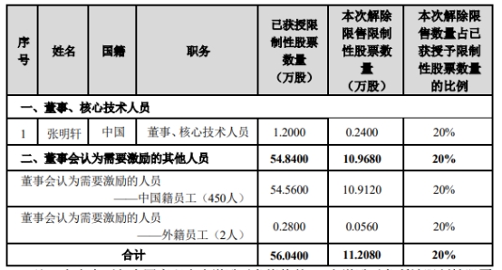 公司2023年限制性股票激励计划第一个解除限售期解除限售条件已经成就,本次符合解除限售条件的激励对象共计453人,可申请解除限售的第一类限制性股票数量为11.2080万股。