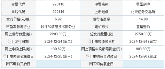 今日申购:星图测控