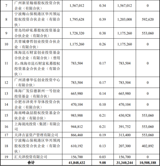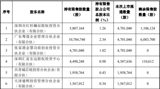 慧智微于12月16日发布了《关于首次公开部分限售股上市流通的公告》。本次上市流通的限售股为公司首次公开发行部分限售股,限售期限为自股东取得该等股份之日(以完成工商变更登记之日为准)起三十六个月或自公司首次公开发行的股票在证券交易所上市之日起十二个月内(以上述期限孰长者作为锁定期),本次上市流通的限售股数量为31,340,244股,占公司总股本的6.80%,于2024年12月24日起上市流通,限售股股东数量为19名。