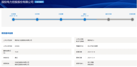 国投电力定增募不超70亿获通过 中信证券国投证券建功