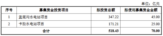 国投电力2024年10月21日披露《2024年度向特定对象全国社会保障基金理事会发行A股股票证券募集说明书(申报稿)》。国投电力本次发行拟募集资金人民币不超过70.00亿元,扣除相关发行费用后的募集资金净额将全部用于清洁能源项目建设,具体为:孟底沟水电站项目、卡拉水电站项目。