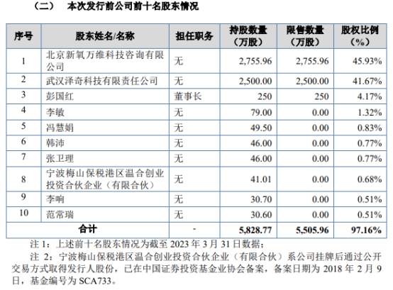 截至招股说明书签署日,奇致激光第一大股东新氧万维直接持有奇致激光45.93%的股份,通过武汉泽奇科技有限责任公司(以下简称“泽奇科技”)间接持有奇致激光41.67%的股份,合计持有公司87.60%的股份,为公司的控股股东。
