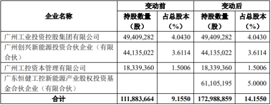 香港孚能转让其持有的公司56,822,517股股份,占公司总股本的4.65%给恒健工控新能源;赣州孚创转让其持有的公司4,282,678股股份,占公司总股本的0.35%给恒健工控新能源。上述合计61,105,195股股份,占公司总股本的5.00%,转让价格为15.90元/股,转让款项总对价(含税)为971,572,600.50元,以现金方式支付。