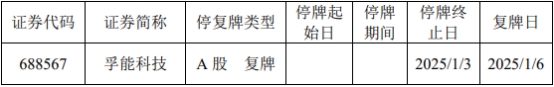 根据《上海证券交易所科创板股票上市规则》《上海证券交易所上市公司自律监管指引第4号——停复牌》等相关规定,经公司向上海证券交易所申请,公司股票于2025年1月6日(星期一)上午开市起复牌。《股份转让协议》约定本次交易获得香港孚能和赣州孚创内部批准,及工控集团和恒健工控新能源获得上级国资监管单位同意后生效。截至本公告日各方虽已完成交易文件规定的生效条件《股,份转让协议》生效,但各方仍需向上海证券交易所申请出具股份转让合规性确认意见、向中国证券登记结算有限责任公司上海分公司申请办理过户手续、跨境支付的税务备案、外汇登记、经营者集中申报等相关手续。上述事项能否最终完成实施以及上述事项的完成时间尚存在不确定性。