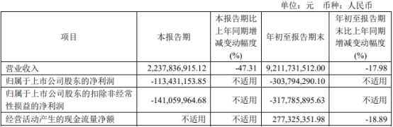 孚能科技2024年第三季度报告显示,公司前三季度实现营业收入92.12亿元,同比下降17.98%;归属于上市公司股东的净利润-3.04亿元,上年同期为-15.63亿元;归属于上市公司股东的扣除非经常性损益的净利润-3.18亿元,上年同期为-14.81亿元;经营活动产生的现金流量净额2.77亿元,同比下降18.89%。