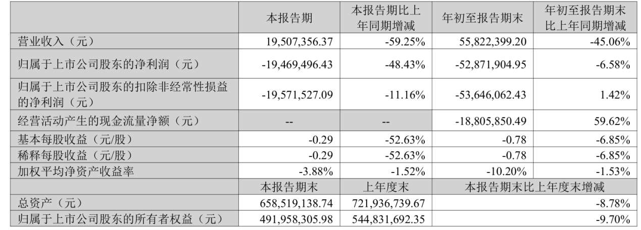 2024年前三季度,天迈科技实现营业收入5582.24万元,同比下降45.06%;归属于上市公司股东的净利润-5287.19万元,上年同期为-4960.94万元;归属于上市公司股东的扣非净利润-5364.61万元,上年同期为-5441.86万元;经营活动产生的现金流量净额为-1880.59万元,上年同期为-4656.84万元。